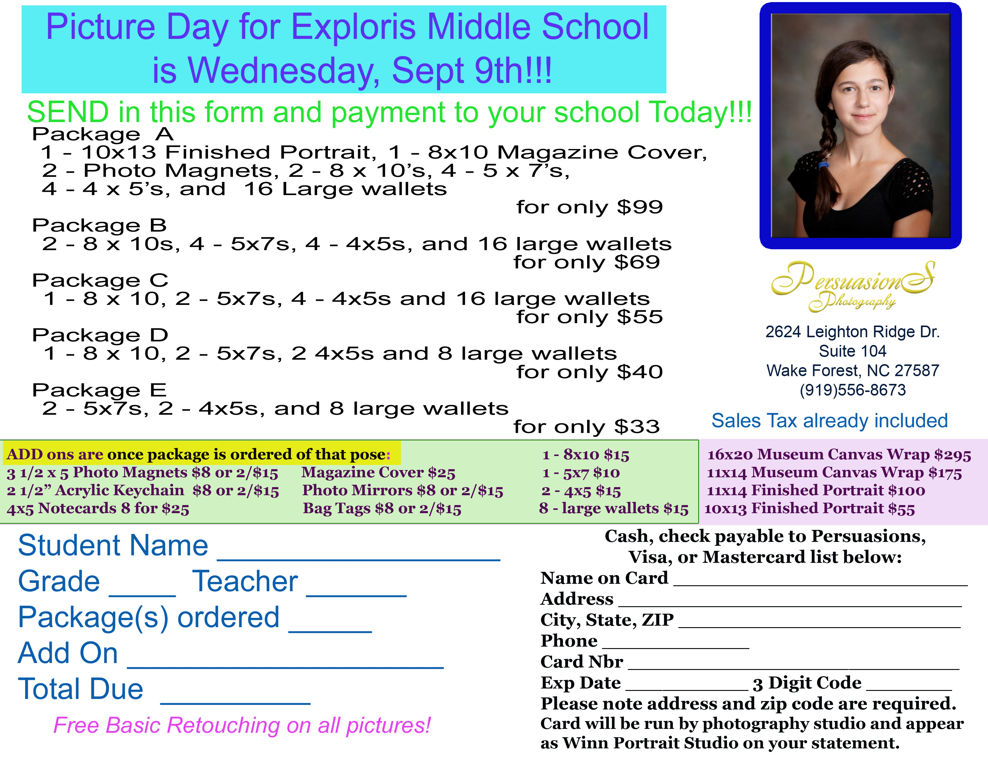 The time is always first thing in the morning, starting around 8:30 for the middle school and around 8:45 for the elementary school.