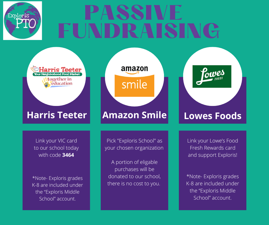 Did you know that you can earn money for Exploris just by shopping like you normally do? We have partnered with Lowes, Harris Teeter, Publix and Amazon Smile, all you have to do is sign up and we get a % back from your purchase! Please note, that with grocery stores you need to re-signup each year!