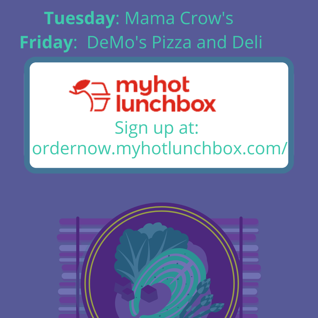 Thanks for your patience while we are making the switch to our new lunch program: My Hot LunchBox. At this time, we are excited to roll out services two days a week with two amazing community restaurants: