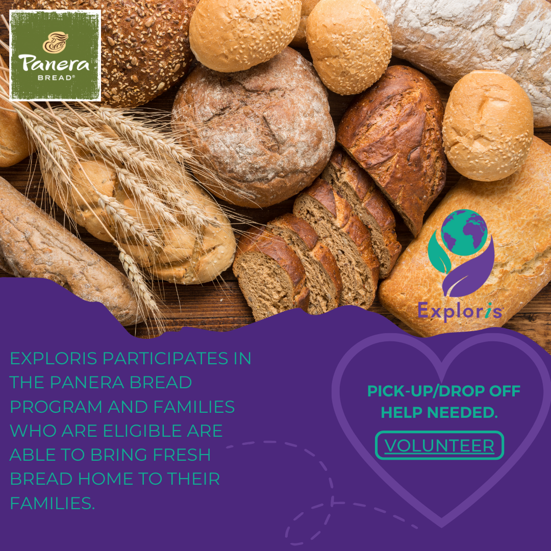 The Exploris School participates in the Panera Bread program. Families who are eligible are able to bring fresh bread home to their families.