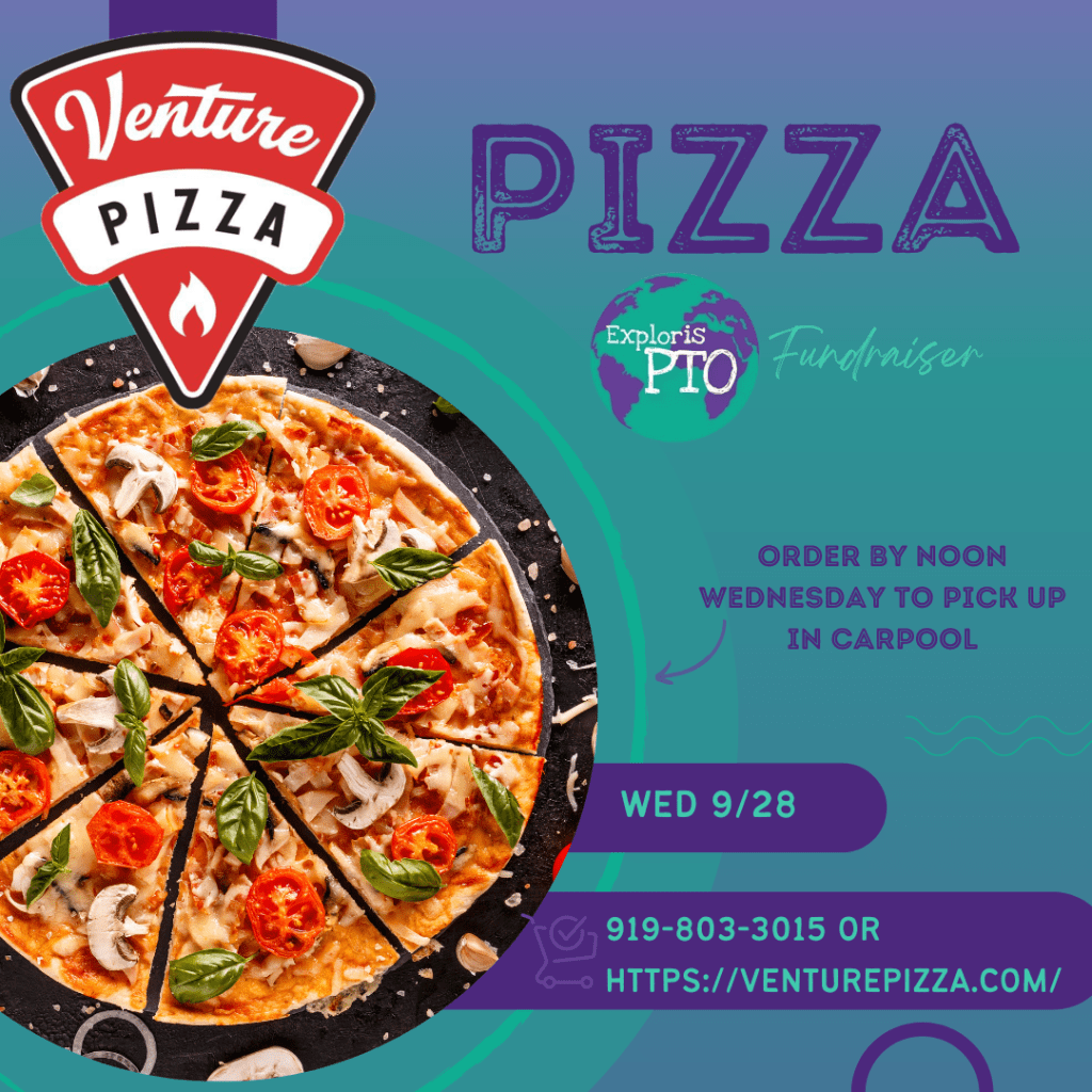 Wednesday, September 28 we are partnering with Venture Pizza (yum). They are donating 33% of each sale back to Exploris! You have two options: you can pick it up from carpool- you don’t even need to get out of your car, or directly from the store 2320 Bale St #114, Raleigh, NC 27608
