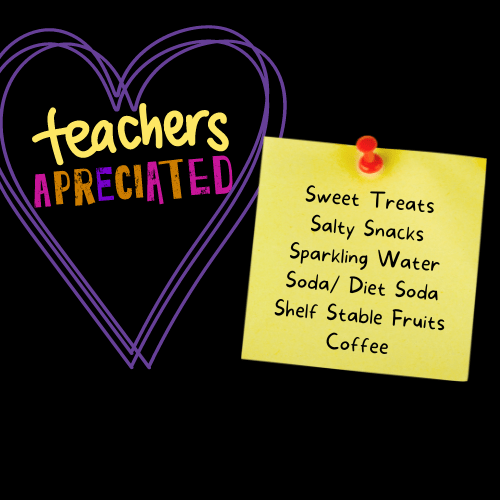 We are still collecting donations for stocking the teachers lounge at both the Elementary and Middle School. They really enjoy Flavored Sparkling Water (La Croix, Bubly, etc.), Salty Snacks (chips, popcorn, etc.), Sweet Treats, Soda, Diet Soda, Shelf Stable Fruit and Coffee. Additionally, they would love some immune boosting items: Vitamin C Supplements, Citrus Fruit, Herbal Tea, etc. now that we are well into autumn and illnesses abound let’s help them stay well!