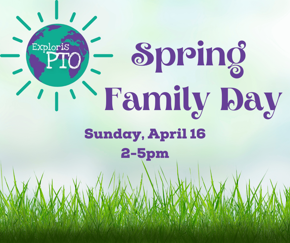 Next weekend is our Spring Family Day. This is an awesome event held for the entire Exploris community on the Elementary School campus. There will be food, a DJ, bouncy slide, crafts, field games, and even pizza you can order ahead of time and take home for dinner! This is a great opportunity to meet and see friends in our awesome community.