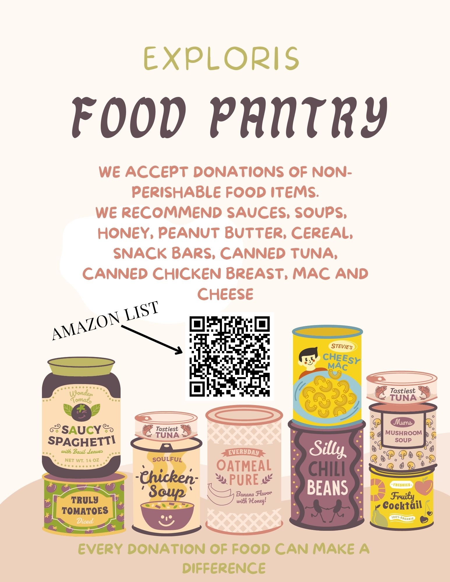 Please consider supporting our Exploris Food Pantry. Every donation directly benefits families within our school community.