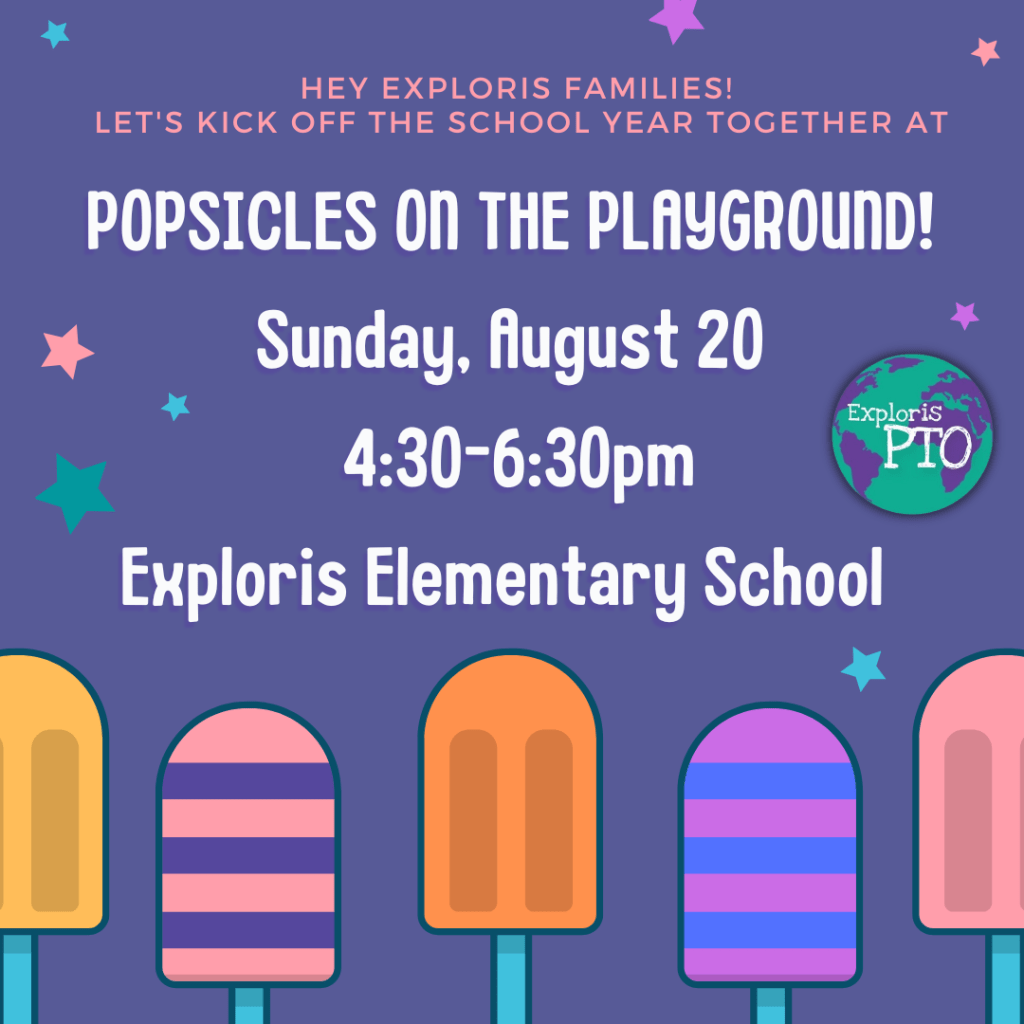 JOIN US for Popsicles! August 20. All Exploris families and students are encouraged to attend this fun social event.