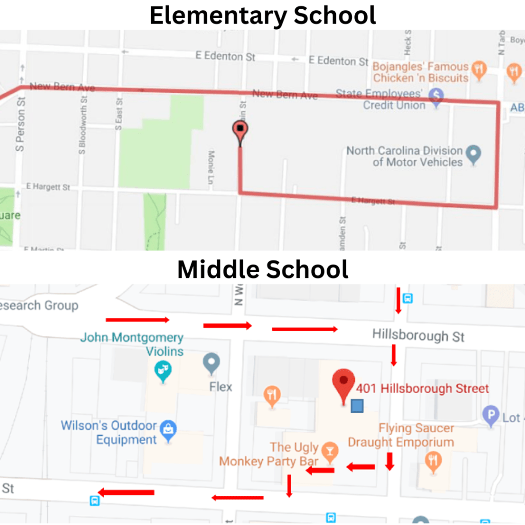 - Please approach by going down Hargett, and then turning RIGHT into Swain St. Turn RIGHT as you leave the school, and turn RIGHT onto Morgan St./New Bern at the light. (map route options)