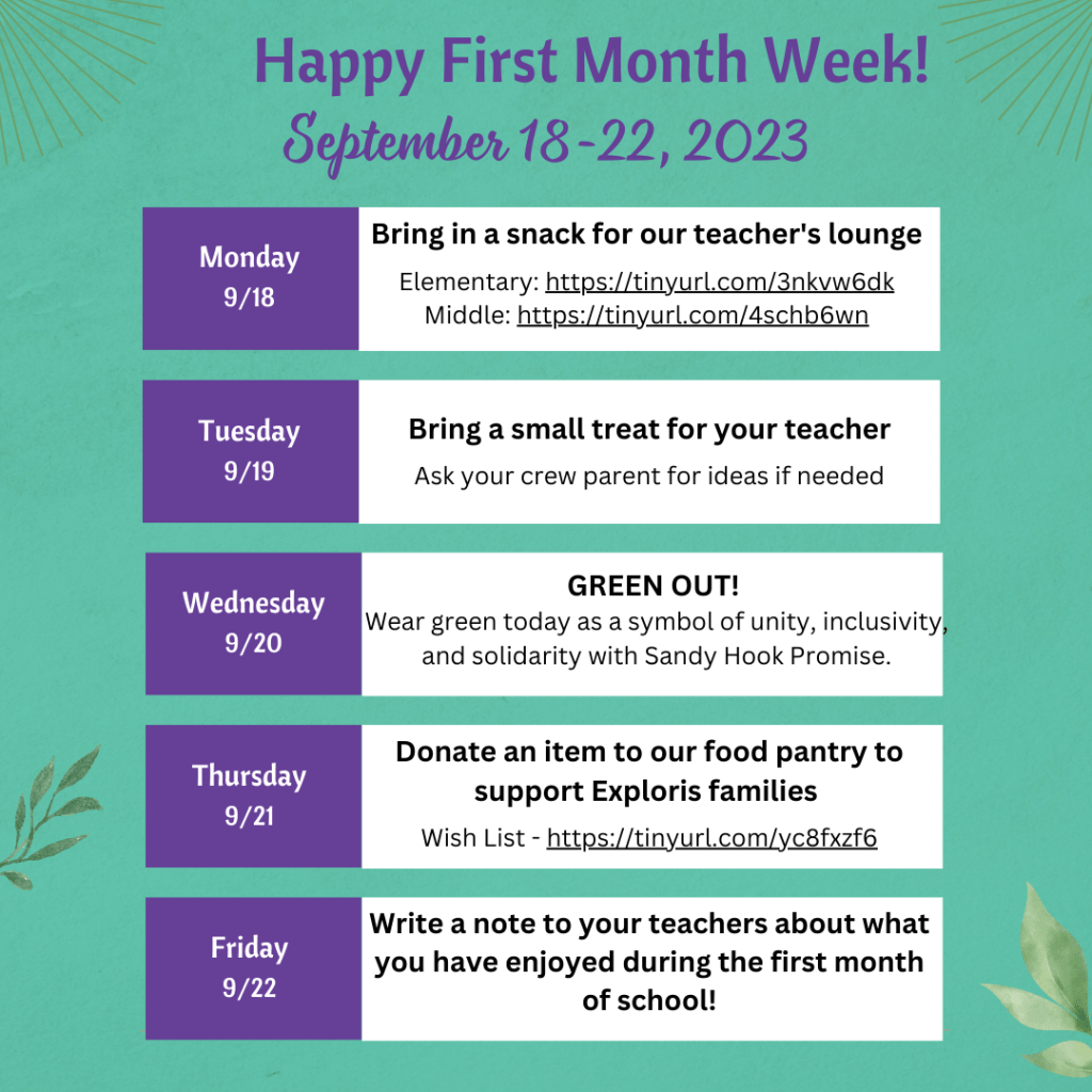 Happy first month of school! This week, we will be taking the time to celebrate by recognizing our teachers, as well as supporting our Exploris community members via the Start With Hello Week event.