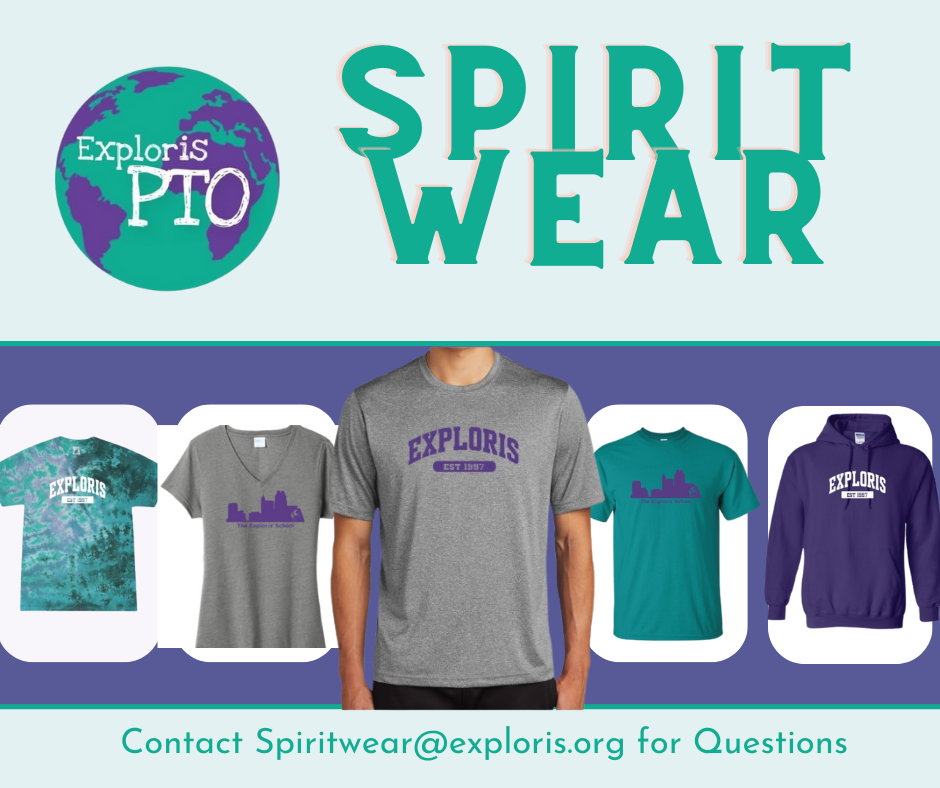 The Spirit wear order window has been extended to this Wednesday, 10/18. Visit http://wearebaysix.com/the-exploris-school/ to order. Contact Martha Fisk at spiritwear@exploris.org with questions.