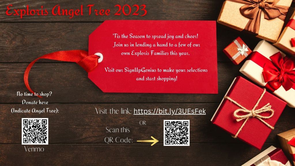 As the Holiday Season approaches, let’s come together to make it special for every member of our Exploris Family! Contact Jessica Roberts with questions.