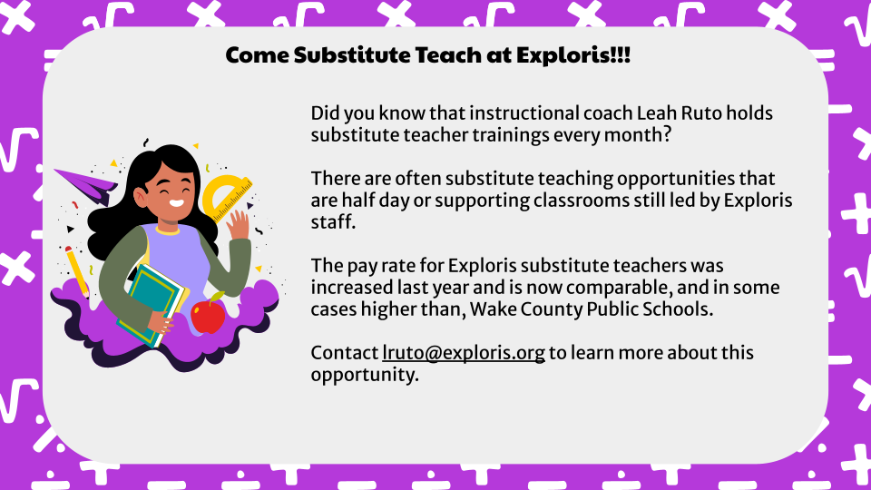 If you have any news or updates that you would like featured in the Monday Minute, please email Dana Kahn at explorisptonews@gmail.com. The deadline for submission is Saturday at 5pm.
