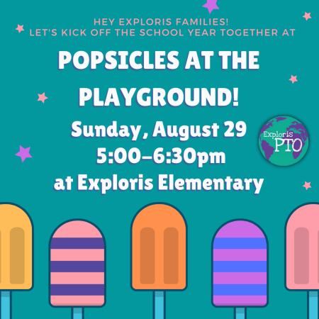 Popsicles at the PLAYGROUND! Sunday at Exploris Elementary