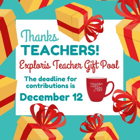 Reminder: Exploris Teacher/ Staff Gift Pool Deadline is Tomorrow (12/12)